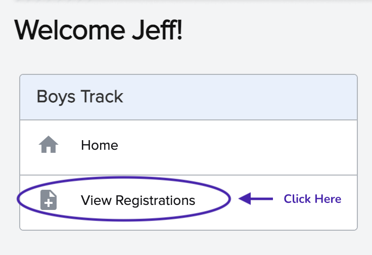 - If you have the "Head Coach" role in Aktivate: Click view your Registrations.